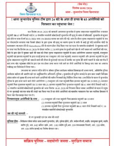 इस कार्रवाई में थाना प्रभारी निरीक्षक राकेश बघेल, उपनिरीक्षक मुकेश डोंगरे, मनोज चौधरी, सउनि. राजकुमार कुमरे, सतीष दुबे और आरक्षक अनिल उइके, संतोष धुर्वे, रामअवतार तिवारी, महेश एवं संदीप झरबड़े का विशेष योगदान रहा।