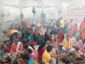 Chhindwara update:शारदीय नवरात्र के पावन पर्व पर महा अष्टमी का हवन बड़े आनंद और श्रद्धा भक्ति के साथ संपन्न हुआ. दोपहर 2 बजे से प्रारम्भ हवन देर रात्रि तक चलता रहा शाम को आरती के बाद बच्चियों ने मातारानी को प्रसन्न करने गरबा की प्रस्तुति मंदिर मे दी, उसके बाद फलाहारी भंडारे का आयोजन किया.