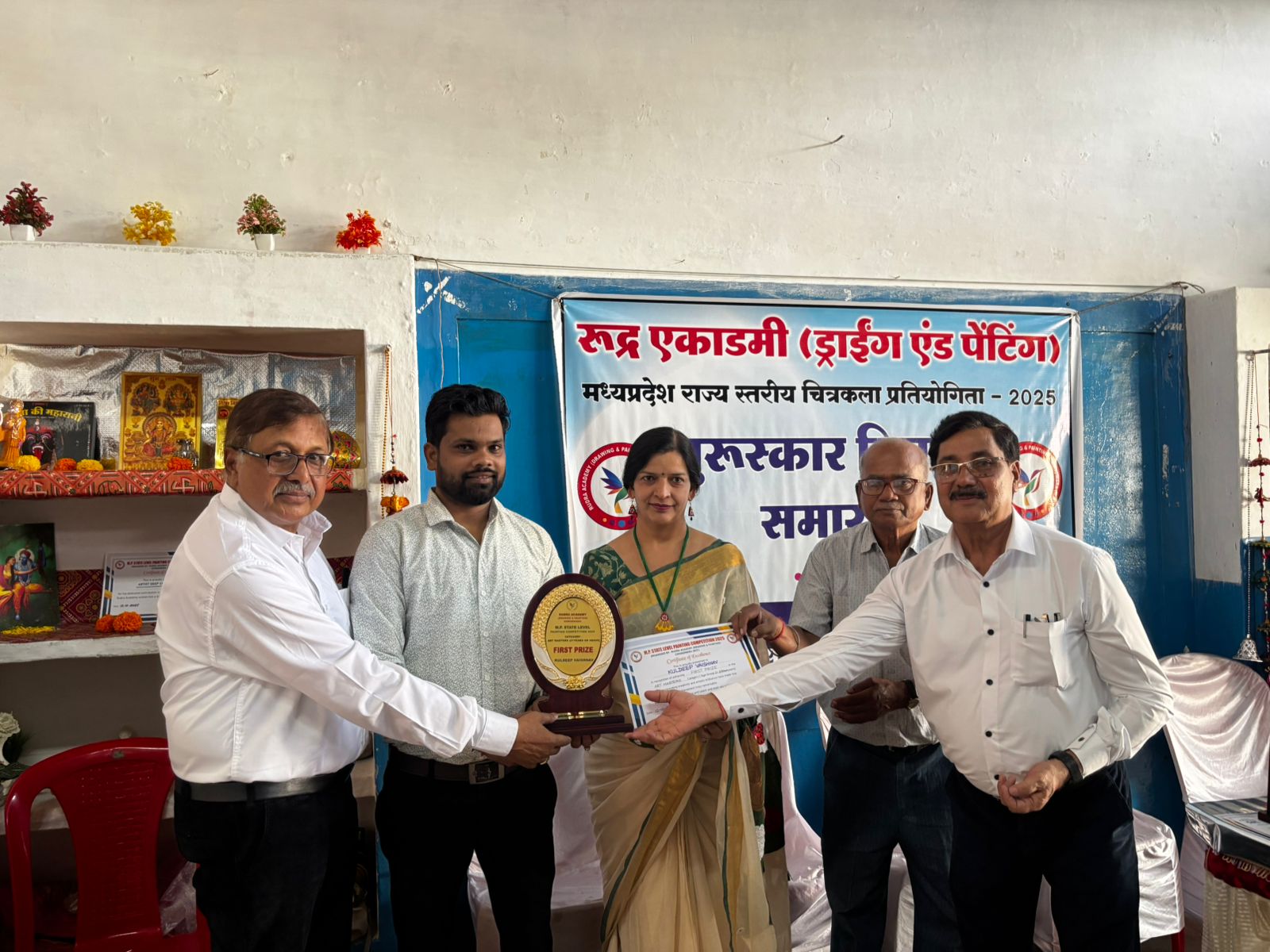 Chhindwara update:छिंदवाड़ा की ड्राइंग एंड पेंटिंग क्षेत्र की प्रतिष्ठित रुद्र अकैडमी द्वारा आयोजित मध्य प्रदेश राज्य स्तरीय पेंटिंग कॉम्पीटिशन 2025 का भव्य पुरस्कार वितरण कार्यक्रम कल संपन्न हुआ , इस बारे में संस्था के डायरेक्टर एवं वरिष्ठ आर्टिस्ट हेमंत झा द्वारा जानकारी दी गई कि इस प्रतियोगिता में छिंदवाड़ा के विभिन्न विकास खंडों के अलावा भोपाल इंदौर जबलपुर जिलों के प्रतिभागियों ने भी भाग लिया था । इस प्रतियोगिता में जिले के प्रमुख विद्यालय – के वी 2, सन्त आसाराम गुरुकुल , संदीपनी सी एम राइज स्कूल गुरैया, विद्याभूमि , फर्स्ट स्टेप , निर्मल पब्लिक स्कूल , टी एम वी स्कूल, के वी बरकही, चांदमेटा ब्लैक डायमंड स्कूलों से बहुत प्रविष्टियाँ प्राप्त हुईं । लिटिल आर्टिस्ट केटेगरी से आद्विका राय, राइजिंग क्रिएटर्स केटेगरी से नम्रता रोडनी, यंग विजनरी केटेगरी से जाह्नवी पटेल एवं आर्ट मास्टर्स केटेगरी से चौराई निवासी कुलदीप वैष्णव प्रथम पुरस्कार विजेता रहे – इन्हें डॉ आशा पाठक स्मृति कैश अवार्ड भी प्राप्त हुआ ये अवार्ड स्व डॉ आशा पाठक के पुत्र डॉ शांतनु पाठक द्वारा प्रदान किए गए । कार्यक्रम वरिष्ठ चित्रकार तपन राय चौधरी , दीप चंचलेश , श्रीमती ऋतु गोयल एवं डॉ प्रियंका राय के मुख्य आतिथ्य में संपन्न हुआ । इस कार्यक्रम में प्रतिभागियों ने 45 पुरस्कार जीते । सभी प्रतिभागियों को पार्टिसिपेशन सर्टिफिकेट्स भी प्राप्त हुए । यह कार्यक्रम मीना राय फाउंडेशन , दिशा योगा क्लासेज एवं डॉ शान्तनु पाठक द्वारा स्पान्सर किया गया । यह आयोजन जिले के चित्रकला इतिहास में मील के पत्थर के रूप में दर्ज हुआ ।
