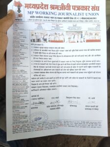 मध्य प्रदेश श्रमजीवी पत्रकार संघ ने 6 सूत्रीय मांगों को लेकर सोपे ज्ञापन