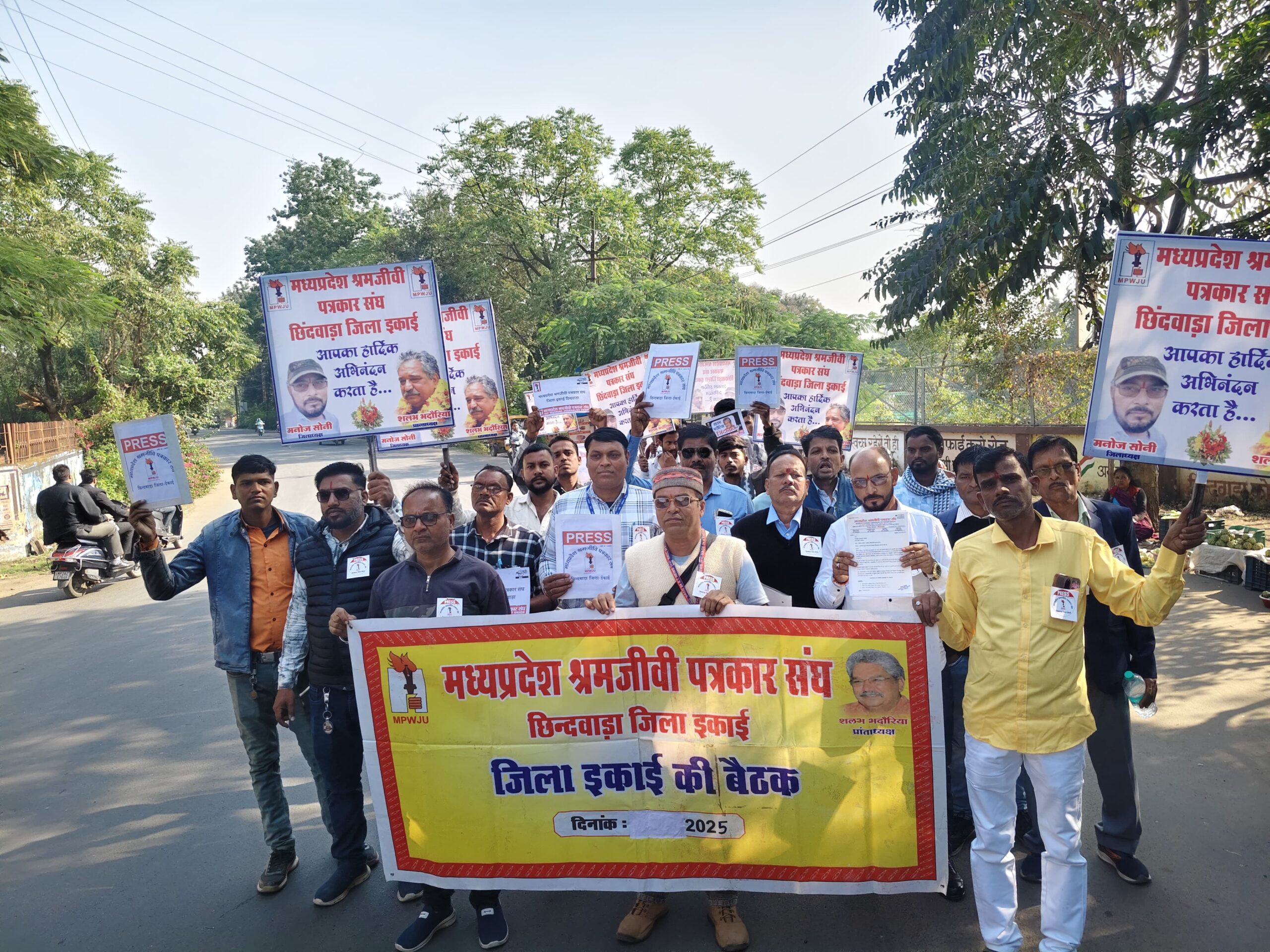 Chhindwara update:(corn city)। मध्यप्रदेश श्रमजीवी पत्रकार संघ के 25 वें त्रिवर्षीय और दो दिवसीय मुरैना महाधिवेशन 2025 में 26 मार्च को अपनी विभिन्न मांगों को लेकर 6 सूत्रीय मांगपत्र दिया था। मुख्यमंत्री जी ने मांगो के संबंध में जल्द ही चर्चा कर निराकरण करने का आश्वासन दिया था लेकिन अभी तक मांगों के निराकरण का संकेत नहीं मिला, रतलाम इसके 3 माह बाद मंडला में आयोजित प्रदेश कार्यसमिति की बैठक में सदस्यों ने आश्चर्य व्यक्त किया कि अभी तक मांगों का निराकण नहीं हुआ और सरकार ने ना ही इस आशय की कोई गतिविधि ही महसूस हुई।